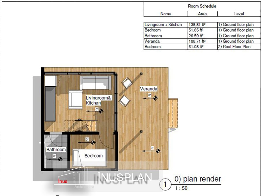 **Small and Impressive Duplex Tiny House 23'x18'** Hello, I'm Architect Yunus, and I'm delighted to present our meticulously designed Duplex Tiny House plan. Our priority in this project is to seamlessly integrate you with nature, creating a space where you can truly unwind and experience the perfect synthesis of architecture and the natural environment. **Project Features:** - 🛏️ **2 Bedrooms** - 🍽️ **1 Kitchen and Living Area** - 🛁 **1 Bathroom** - 🌳 **1 Semi-Open Area (Canopy) with a Swimming Pool** In this project, we've focused on creating spaces with transparent transitions, allowing you to watch and feel nature perfectly. The kitchen and living area share a single space, and we've incorporated a courtyard system to integrate with the eaves. The interaction of indoor and outdoor spaces is designed to bring happiness, allowing you to observe nature and dispel negative energy. You can bring this project to life anywhere in nature. **Project Specifications:** - 🏡 **Total Area:** 466.84 ft² (43.37 m²) - 🛋️ **Living Room/Kitchen:** 138.81 ft² (12.90 m²) - 🛏️ **1 Bedroom:** 51.65 ft² (4.80 m²) - 🛏️ **1 Bedroom:** 61.08 ft² (5.67 m²) - 🚿 **1 Bathroom:** 26.59 ft² (2.47 m²) - 🍃 **1 Canopy/Patio:** 188.71 ft² (17.53m²) **Included Files:** - 🖼️ **3D Rendering** - 📐 **Floor Plan (Floor and Roof)** - 🏗️ **Columns Application Plan** - 🏡 **Wooden Frame, Steel Frame Plans** - 📜 **Full-Size Plans** - 🌆 **4 Elevations (Views)** - 📏 **2 Section Views** - 🌐 **3D View with Material Detail** - 📏 **Section View with Material Detail** - 🏗️ **Section Perspective (Construction) with Detail** - 🏗️ **System Detail** - 🍽️ **Kitchen Detail** - 📜 **PDF (A3) and Dwg Files (Metric & Imperial)** Feel free to download all the architectural files included here. If you have any questions or need further information, please don't hesitate to contact me. Best Regards, Architect Yunus . . . . Tiny House with Patio Sustainable House Design Small Space Living Tiny House for Nature Lovers Compact House Plan Customizable Tiny House Plan Affordable DIY House Plan