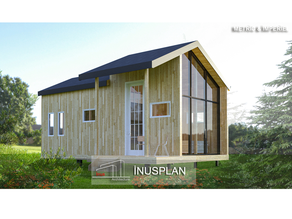 Cabin House plan We have designed a very beautiful house plan for you, our priority in this project that will integrate you with nature is to provide a synthesis of architecture and nature, where you can feel better. In this 36 m2 project consisting of 1 bedroom, 1 kitchen and living area, 1 bathroom and 1 terrace, we designed a fully transparent glass room facade where you can watch and feel the nature perfectly. We designed the kitchen and living area in one area and designed it with a high ceiling and full glass facade, we designed the interior completely from wooden coatings, and you will feel that you will destroy your negative energy with this design, you can design this project yourself anywhere in nature. You can download all the architectural files we presented to you here, If you have any questions, please feel free to write me. I am Yunus, the architect, I am your architect, you can reach me under any circumstances. FEATURES - - Total area : 394,46 ft2 - Living room / Kitchen: 143,17 ft2 - 1 Bedroom : 105,97 ft2 - 1 Bathrom : 34,72 ft2 - 1 Terrace/Veranda: 53,70 ft2 - 2 Balcony: 32,2 ft2 - 1 Hall: 24,70 ft2 FİLE İNCLUDE -3D Rendering - Floors Plan (Ground and Roof) - Columns Aplication Plan - Wood frame, Steel Frame - Plans vith Full Dimension - 4 Elevation (View) - 2 Section - 3D Viev Vith Material Detail - Section Perspective Vith Material Detail - Section Perspective ( CONSTRUCTİON) VİTH DETAİL - System Detail - Kitchen Detail -PDF(A3) and Dwg File (METRİC & İMPERİEL)